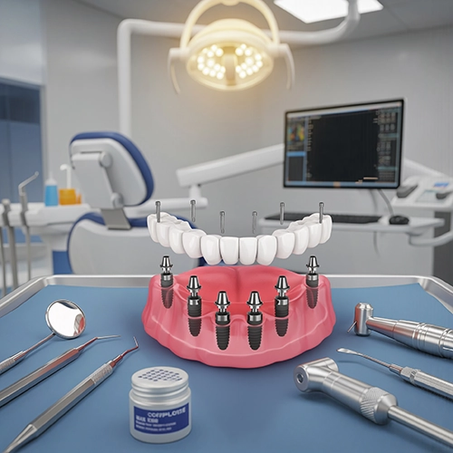 All-on-X dental implants offer a modern, long-lasting solution for patients who want to restore their full smile with stability and comfort. Performed by Dr. Ammar Pabaney, this advanced treatment uses strategically placed titanium implants in the jawbone to securely support a complete arch of natural-looking teeth. The procedure provides improved function, durability, and aesthetics compared to traditional dentures, allowing patients to eat, speak, and smile with confidence. Designed for efficiency and long-term performance, All-on-X implants are transforming full-mouth restoration in modern dentistry.